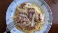中華丼の作り方で前回と違うところは、炒めるときに油を使わなかった事。豚肉からの油のみで調理したのでヘルシー(なのか?)。